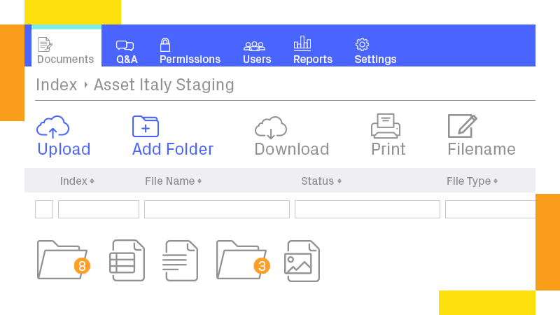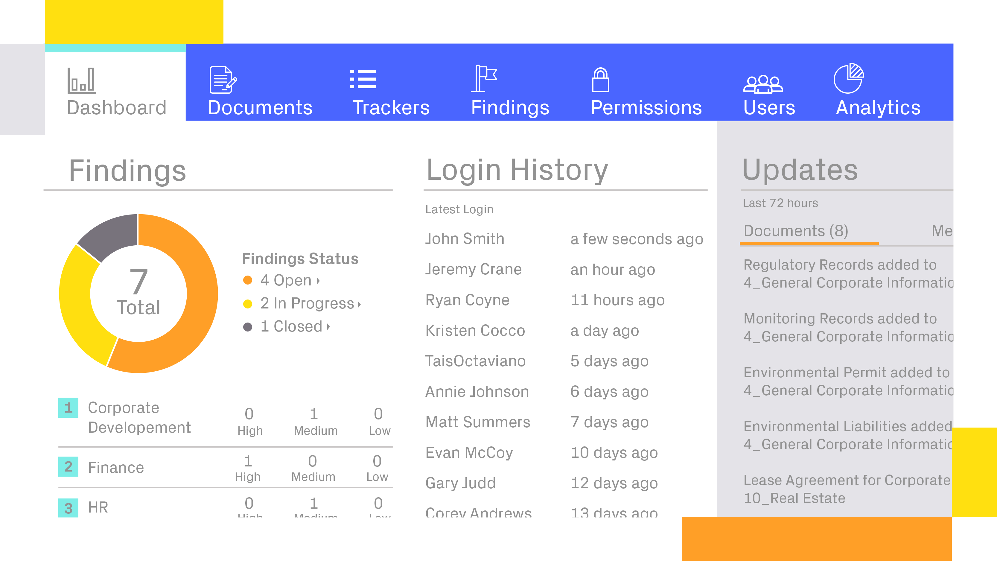 Le sale dati Datasite Merrill seguono rigorosi standard di sicurezza, come indicato dalla certificazione ISO 27001 e dalla conformità SSAE 16 SOC 2. I protocolli di sicurezza esemplari sono completati da impostazioni granulari dei permessi degli utenti e da analisi dettagliate.